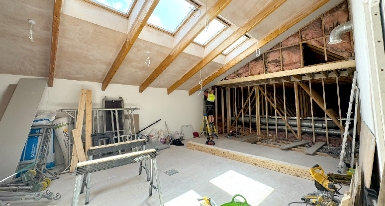 To create the new upper floor, we made structural modifications to the existing roof void. This included reinforcing the original trusses and installing new load-bearing supports. We also added a staircase and a lift to provide easy access between floors. Moreover, we incorporated new roof windows and internal glazing to maximise natural light throughout the building.